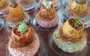 最近はアップサイクルに特に力を入れ「捨てずにリサイクル」「誰かの”いらないもの”を私の”かわいいもの”に」をモットーに、仕事への興味や楽しさを共有し、事業所に通うことが嬉しくなるような作業を構築しております。